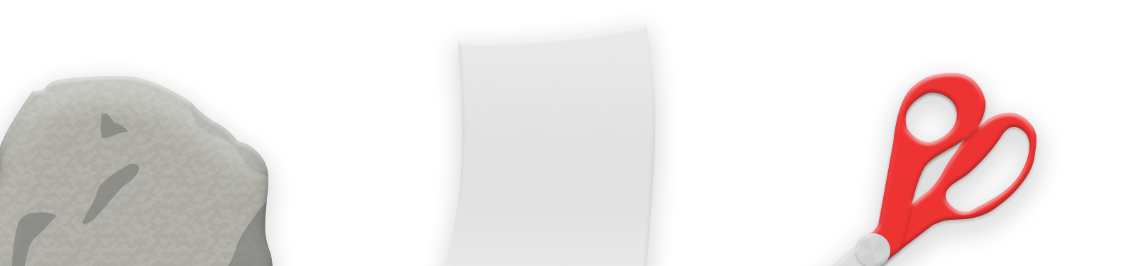 Rock beats scissors, paper beats rock, and scissors beats paper.